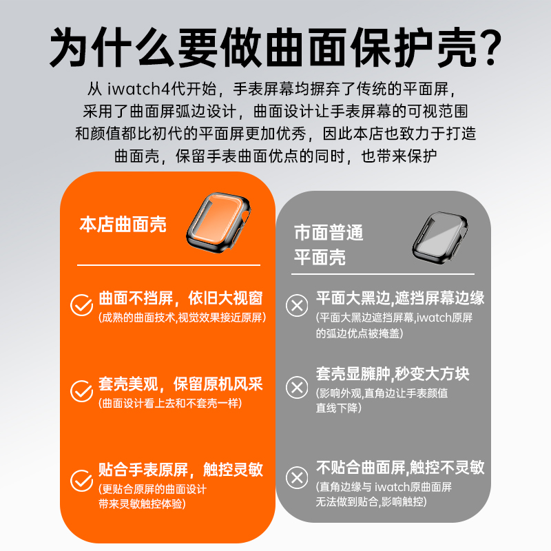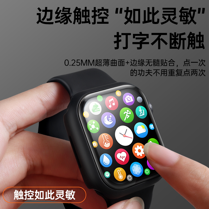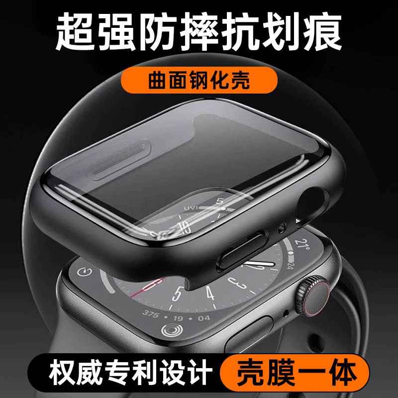 适用iWatch8保护壳曲面AppleWatchS10苹果S9手表带s7保护膜ultra2秋冬9表壳一体watchse钢化全包iphone保护套