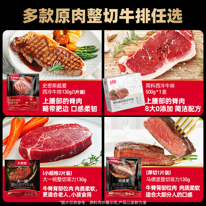 大希地牛排牛肉原肉整切10片儿童黑椒菲力西冷官方旗舰店合成好评