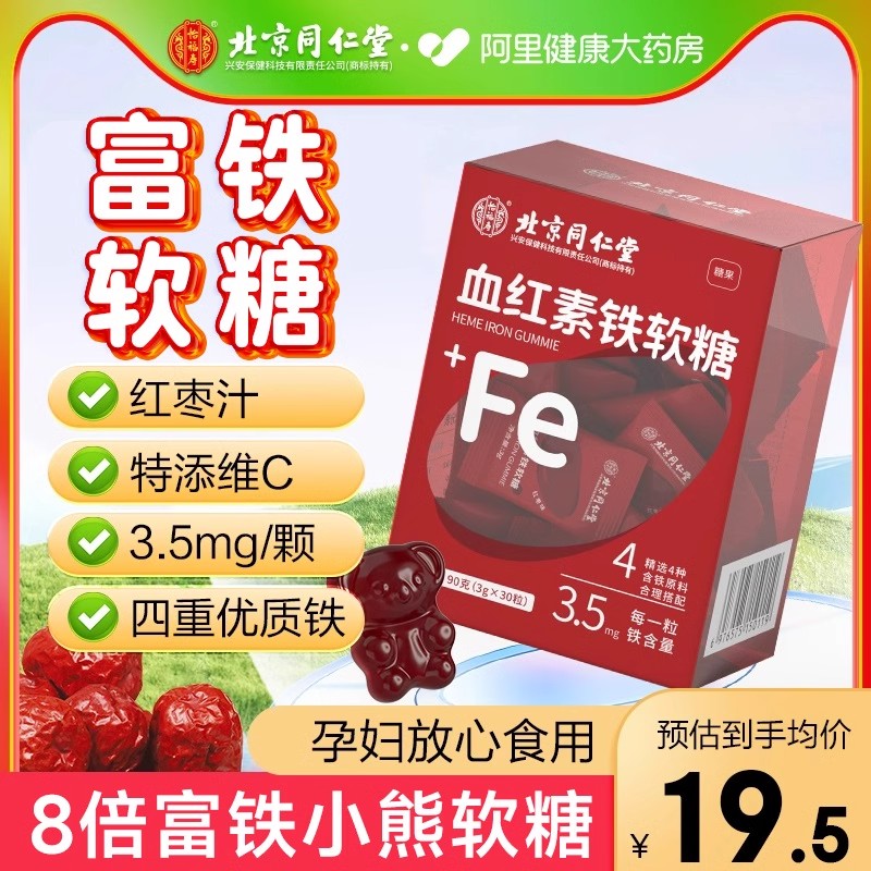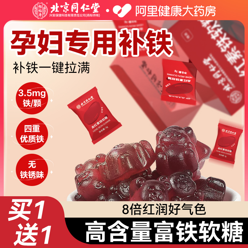 同仁堂富铁软糖孕妇可搭补铁补血贫血女性补铁元素的官方旗舰店lt