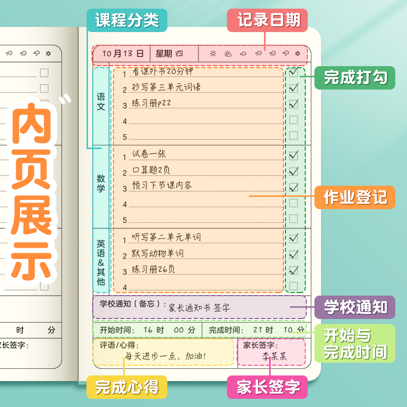 作业登记本小学生专用一年级用记课堂抄作业本记录本可爱抄写家校联系家庭初中生记作业小本子高颜值加厚完成