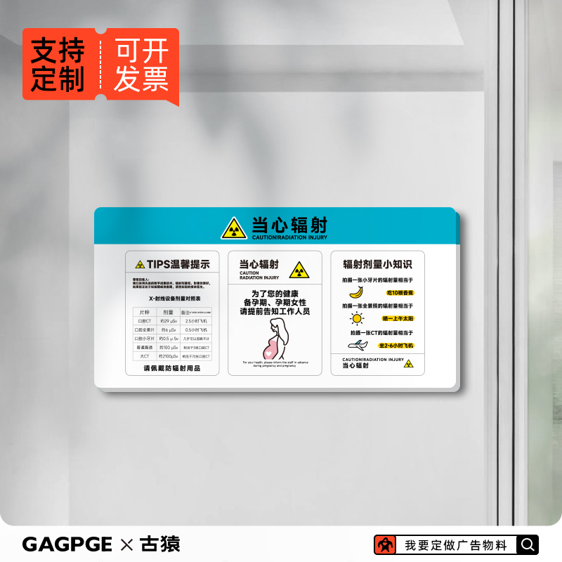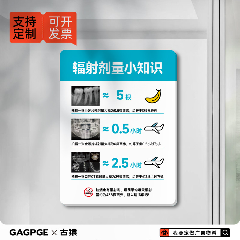 亚克力口腔诊所标识牌辐射剂量温馨提示图牙科CT拍摄注意事项贴牌