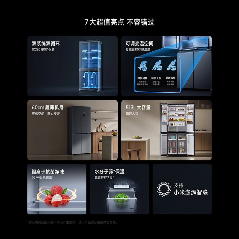 小米米家双系统巨能装513Pro十字四门60cm超薄风冷无霜冰箱一级