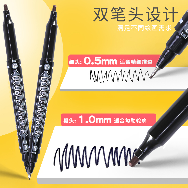 双头记号笔勾线笔美术专用小学生绘画黑色油性粗细两头儿童幼儿园马克笔描边速干防水防油不掉色工地划线