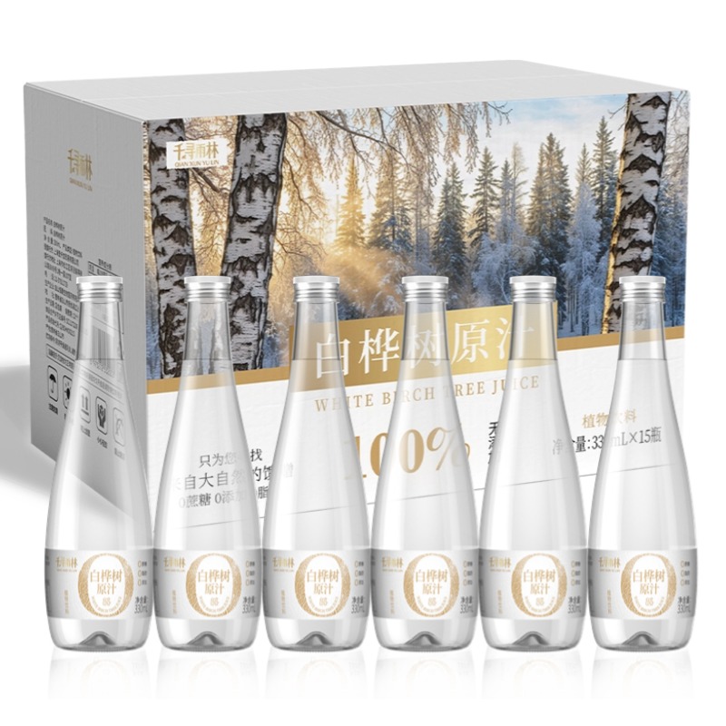 长白山千寻雨林白桦树原汁原液nfc100%植物饮料330ml饮品玻璃整箱