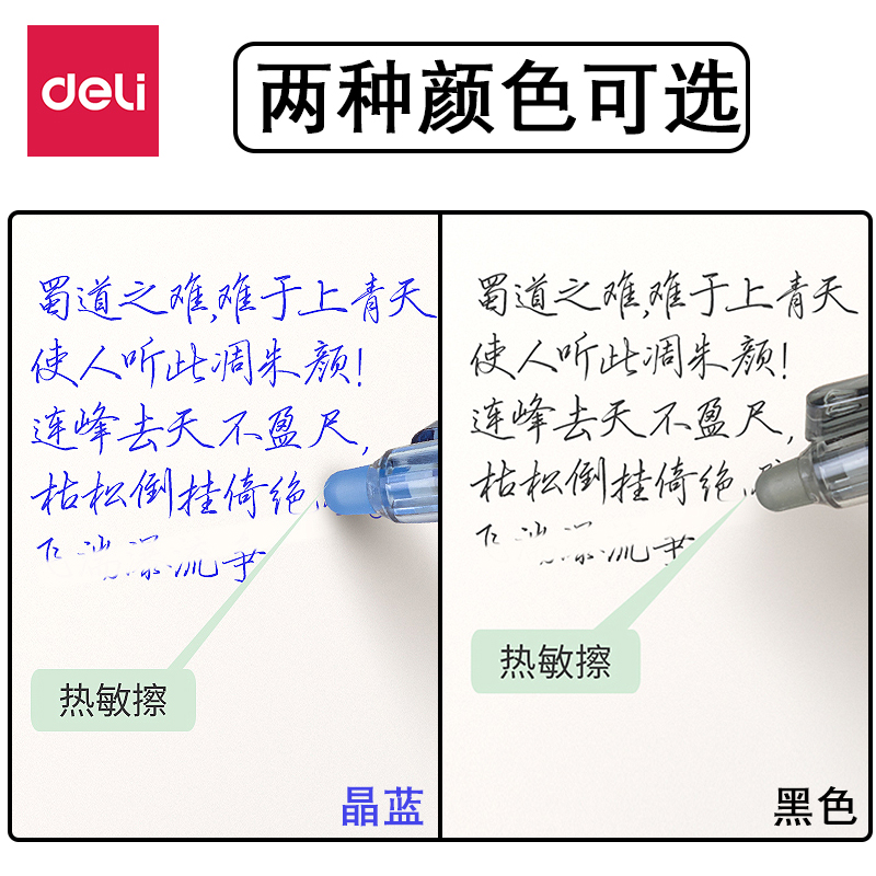 得力可擦笔芯三年级小学生专用按动0.5子弹头晶蓝色盖帽黑色笔芯