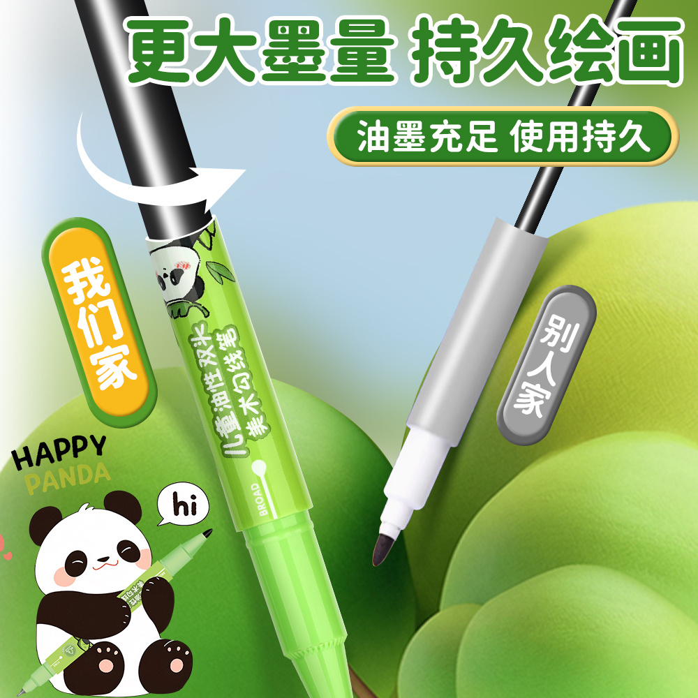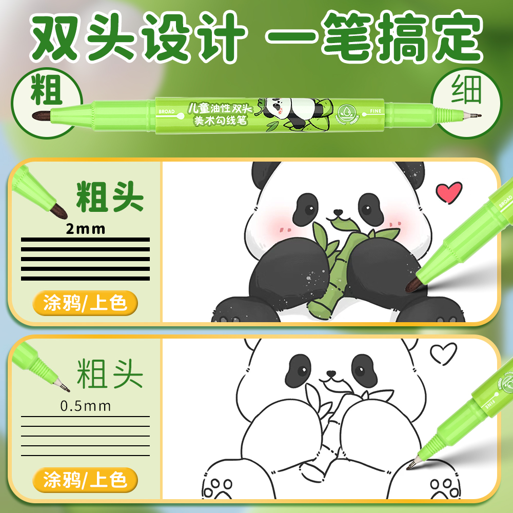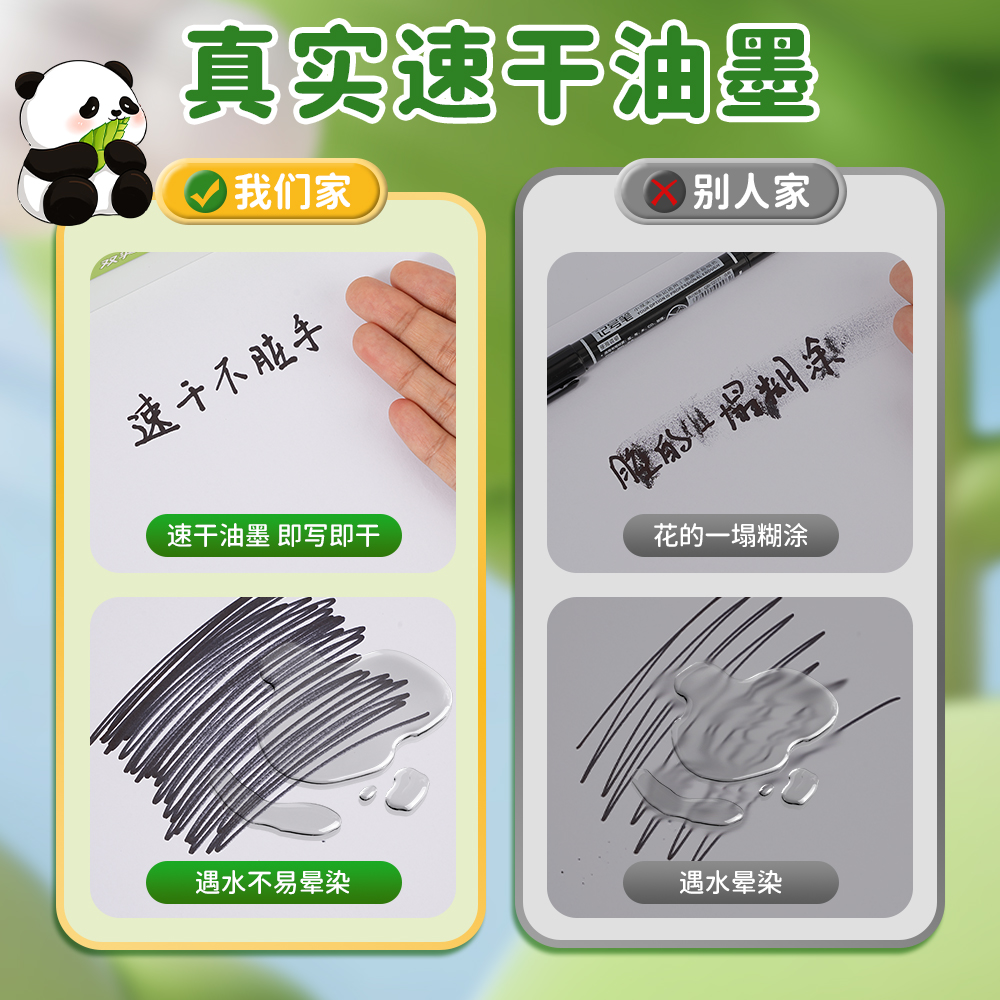晨光熊猫勾线笔美术专用小学生幼儿园儿童黑色双头勾线笔油性防水防油极细不晕染绘画画笔水性描线描边记号笔