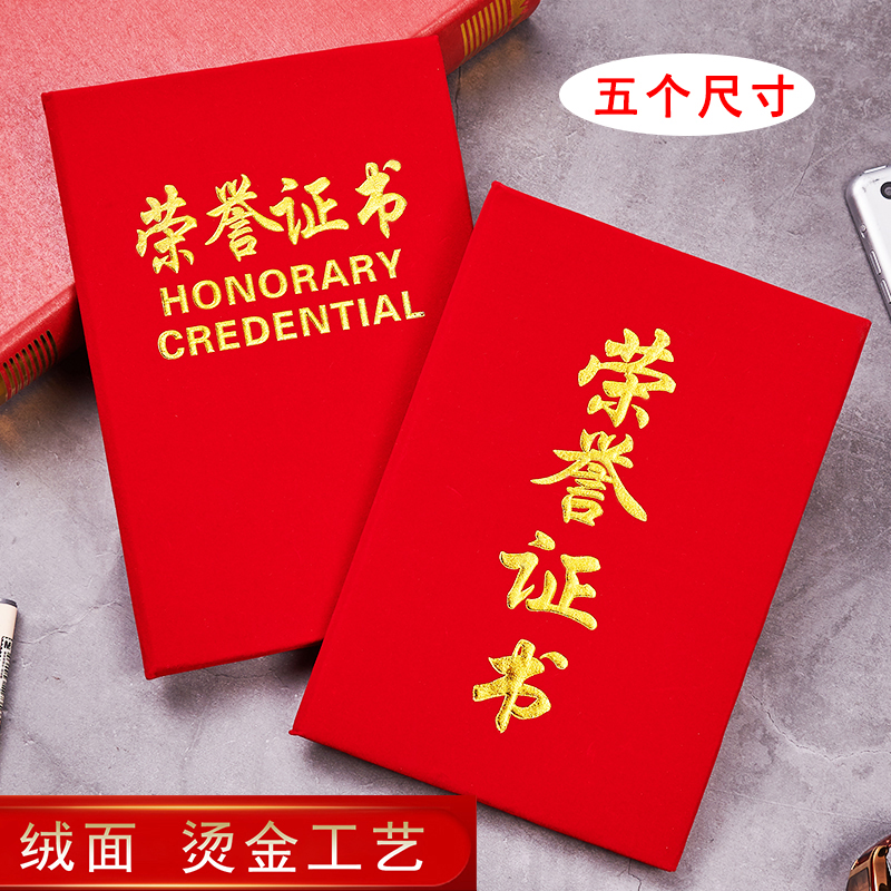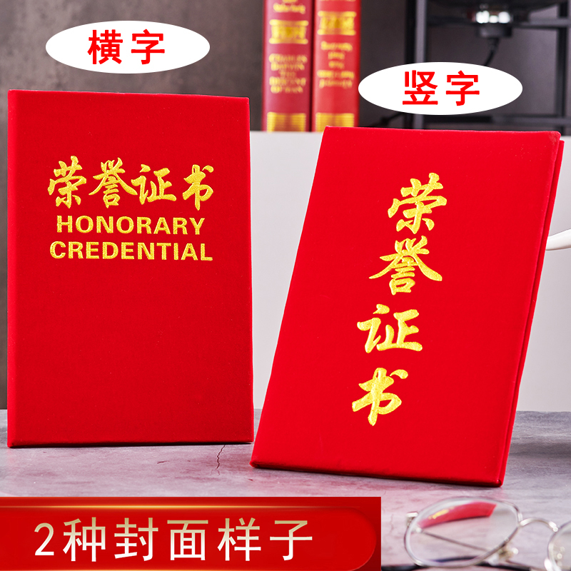 绒面荣誉证书A4获奖比赛证书奖状优秀员工封皮内芯保护套外壳批发