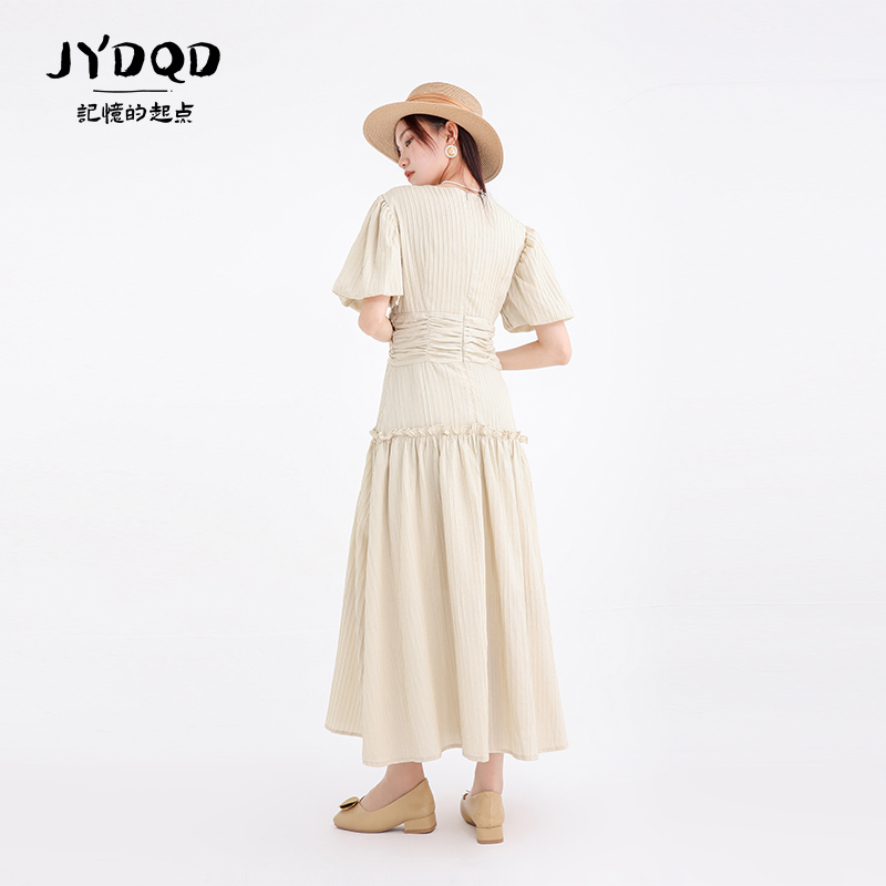 记忆的起点连衣裙2023夏法式V领设计感褶皱温柔风长裙潮67AX80255
