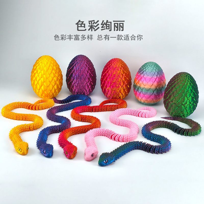 爆款3d打印蛇龙蛋套装蝰蛇活动关节仿真动物桌面摆件儿童玩具礼物