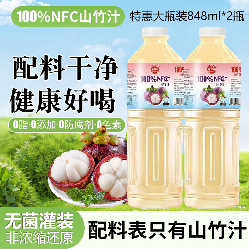 100%纯山竹汁大瓶畅饮装含NFC配料干净0防腐剂新东特价批发饮料