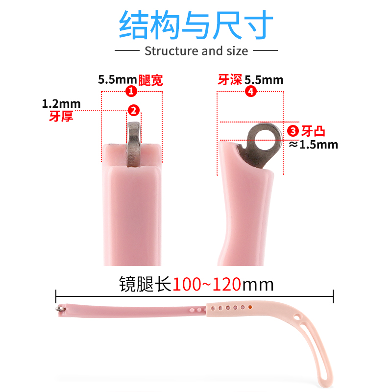 儿童眼镜腿单牙外牙镜脚腿套可伸缩长短学生镜腿断裂更换修复配件