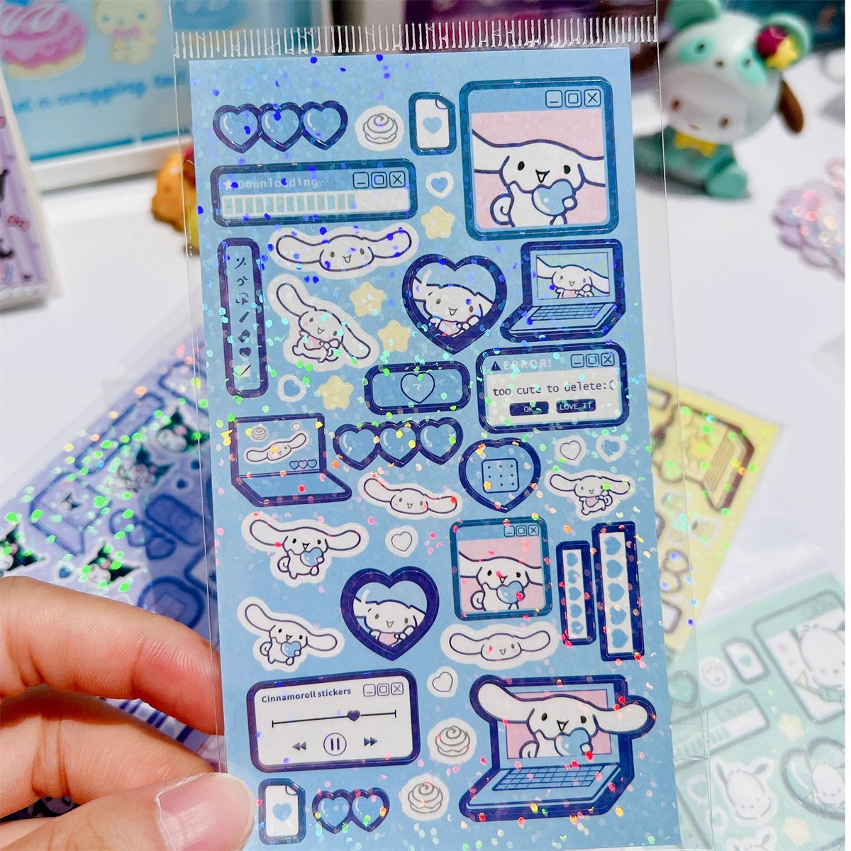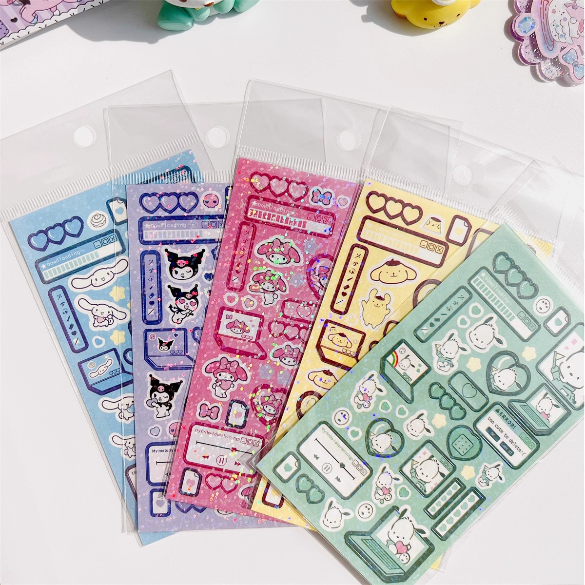 三丽鸥咕卡贴纸镭射套装库洛米美乐蒂kt猫玉桂狗卡通ins素材贴画
