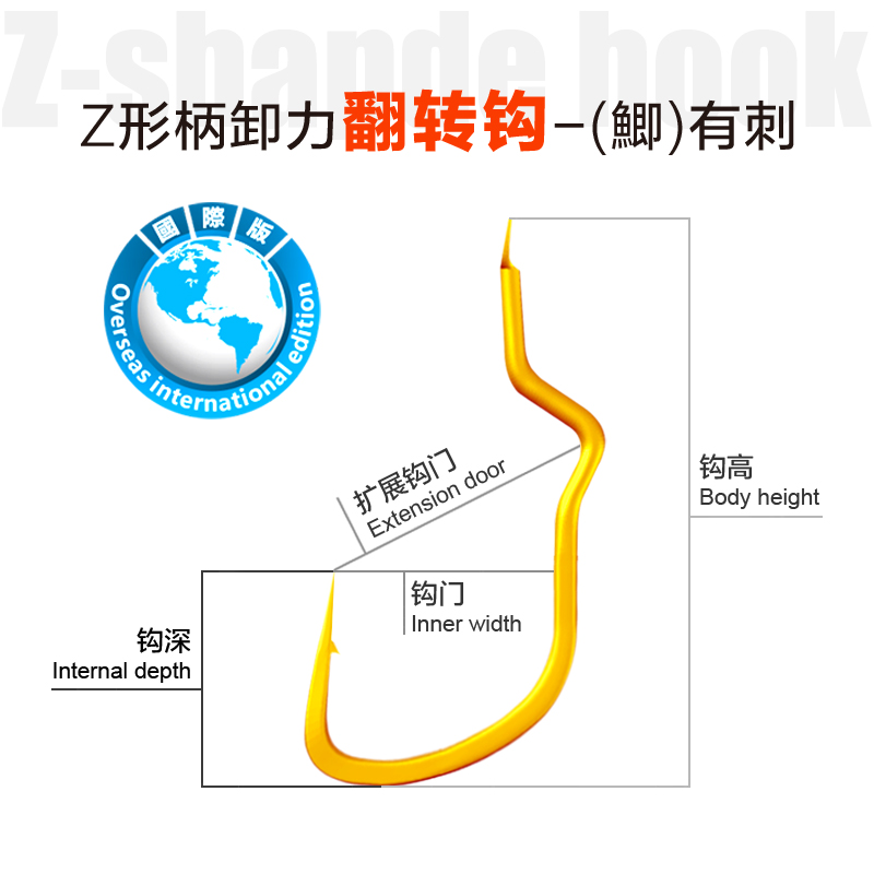 Z形柄-自动翻转钩正品金海夕野钓鲫鱼有倒刺鱼钩散装歪柄卸力鱼钩