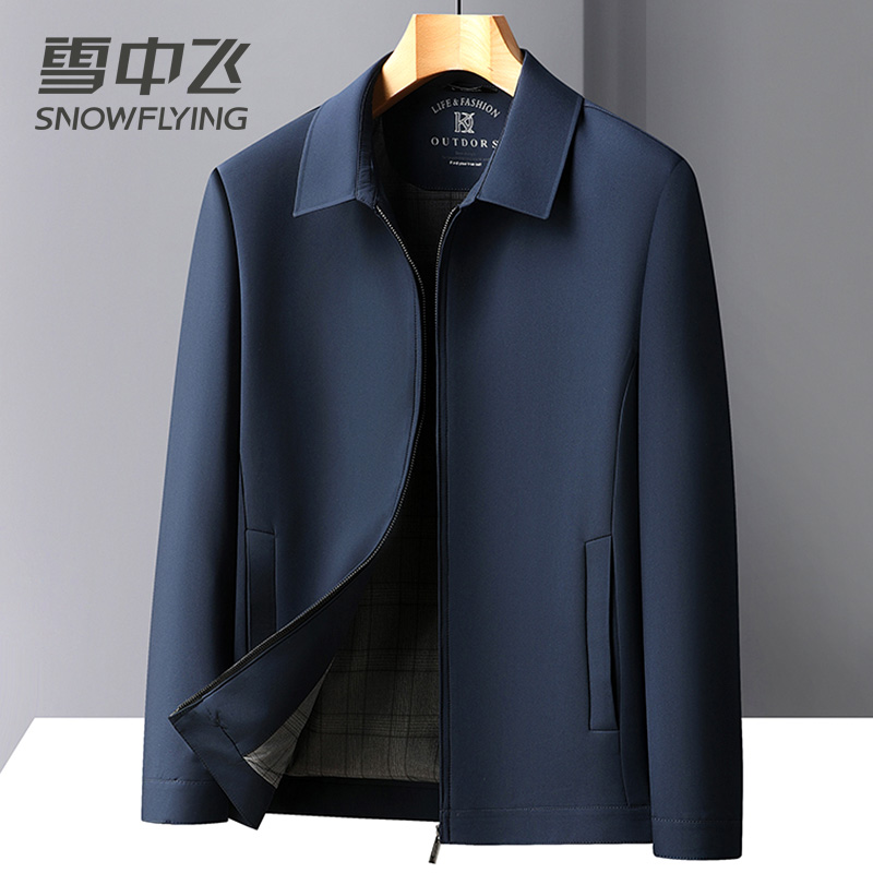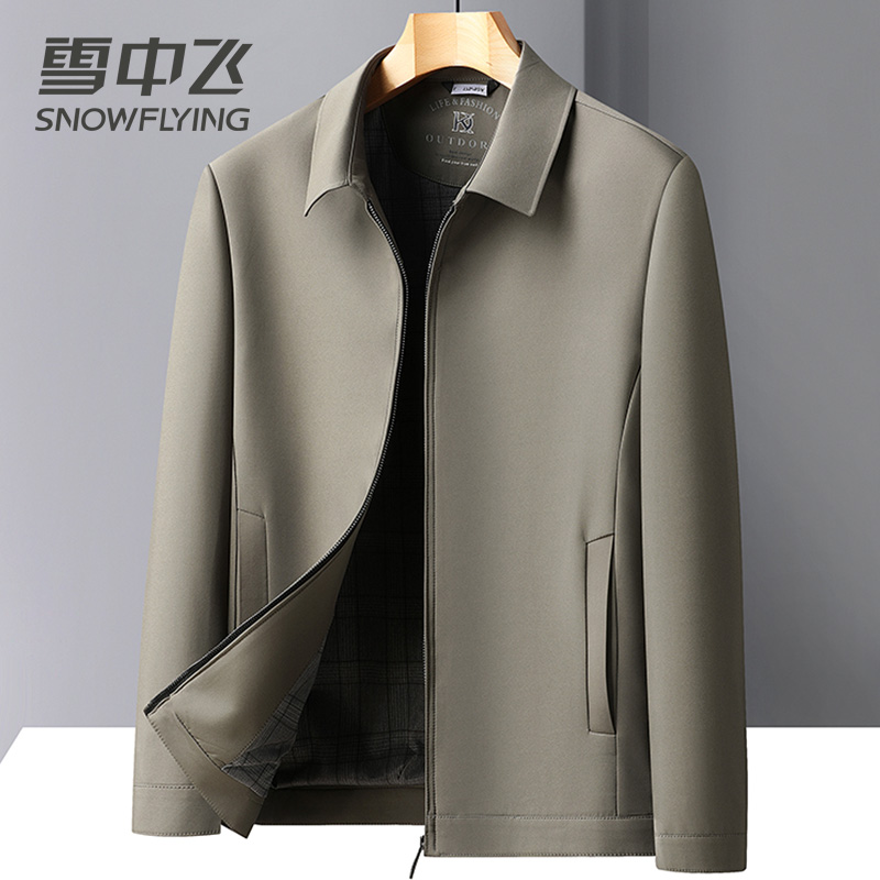 雪中飞男士夹克中老年爸爸装春秋外套翻领行政商务显档次父亲上衣