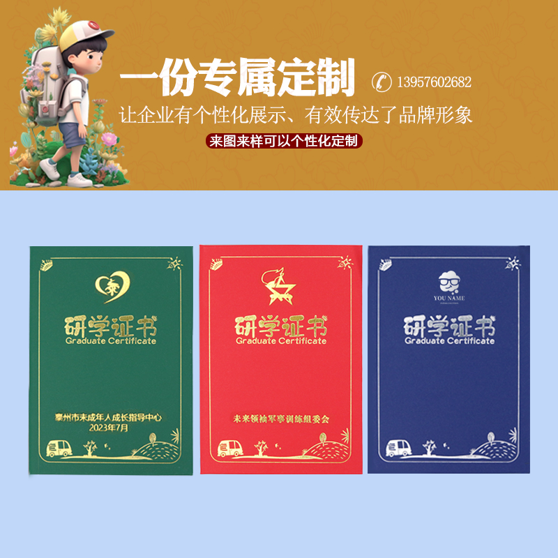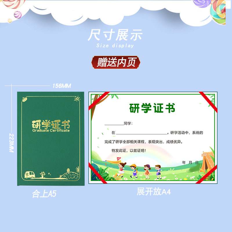 卡通儿童夏季暑假幼儿园研学证书夏令营绿色幼儿衔接证书冬季结营证书课中校外研学旅行春游探学证书春季研学