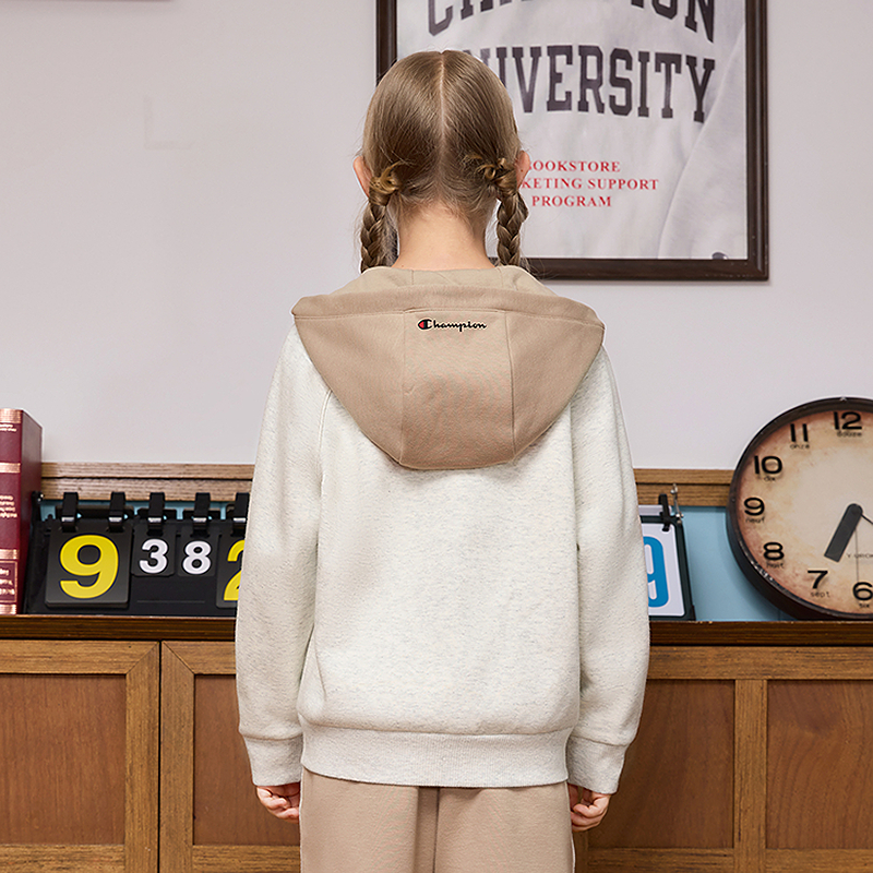 Champion冠军男女童装25秋冬新款休闲拉链插肩袖加绒连帽卫衣外套