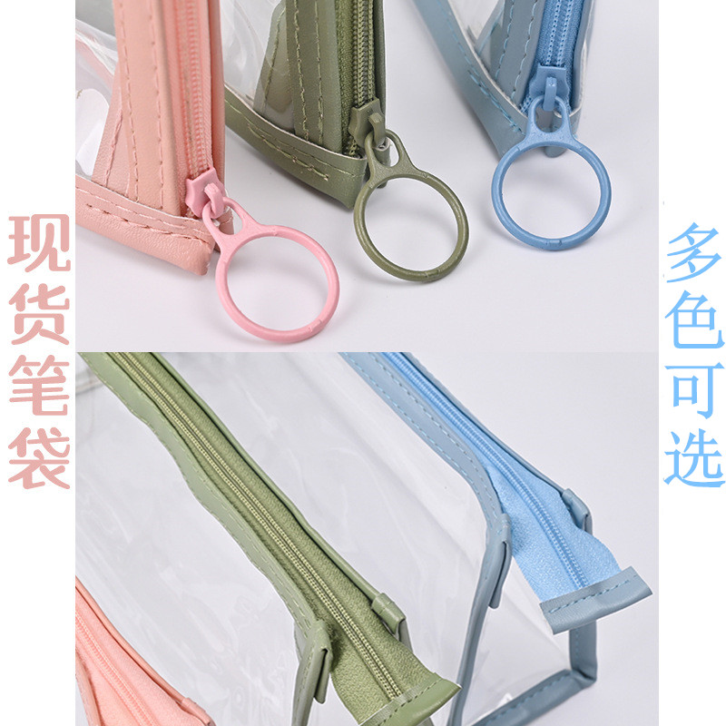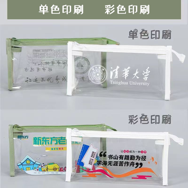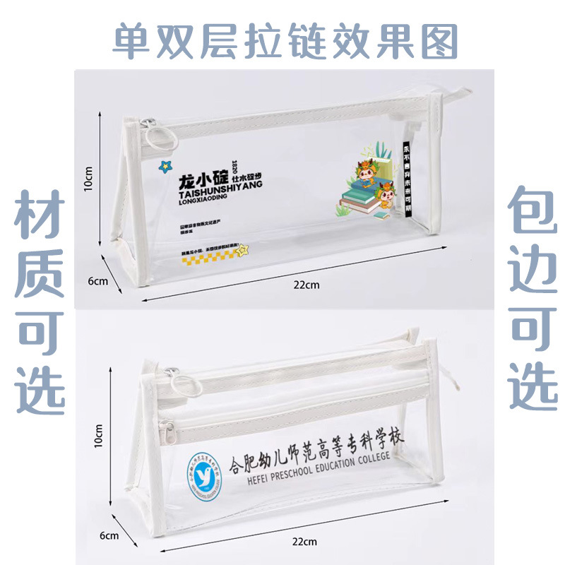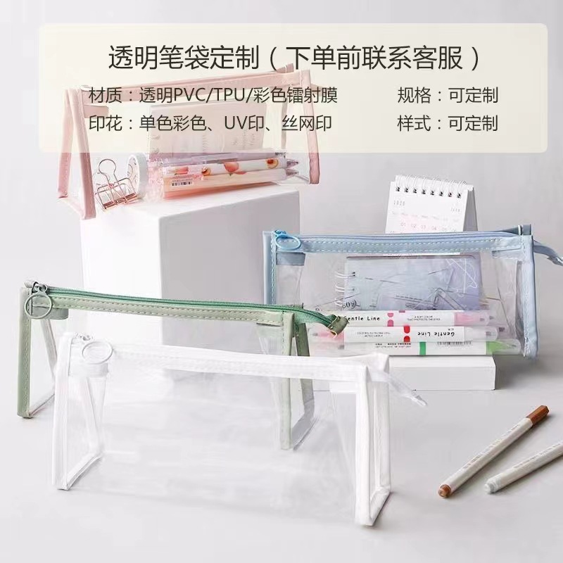 PVC笔袋定制大容量透明笔袋印logo小学生简约可爱三角文具袋高颜值铅笔袋便携化妆包收纳袋宣传袋高中男女生
