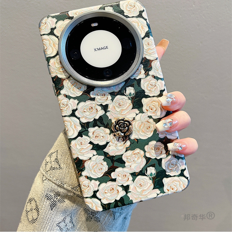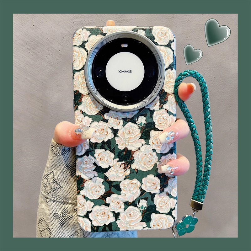 适用华为mate80pro手机壳新款p80pro高级感70白玫瑰山茶花手绳mate60/50高级感电镀mate40皮质女款全包软壳