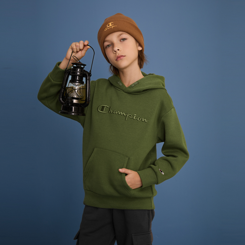 champion冠军儿童25秋季新款男女大小童薄绒经典连帽运动卫衣外套