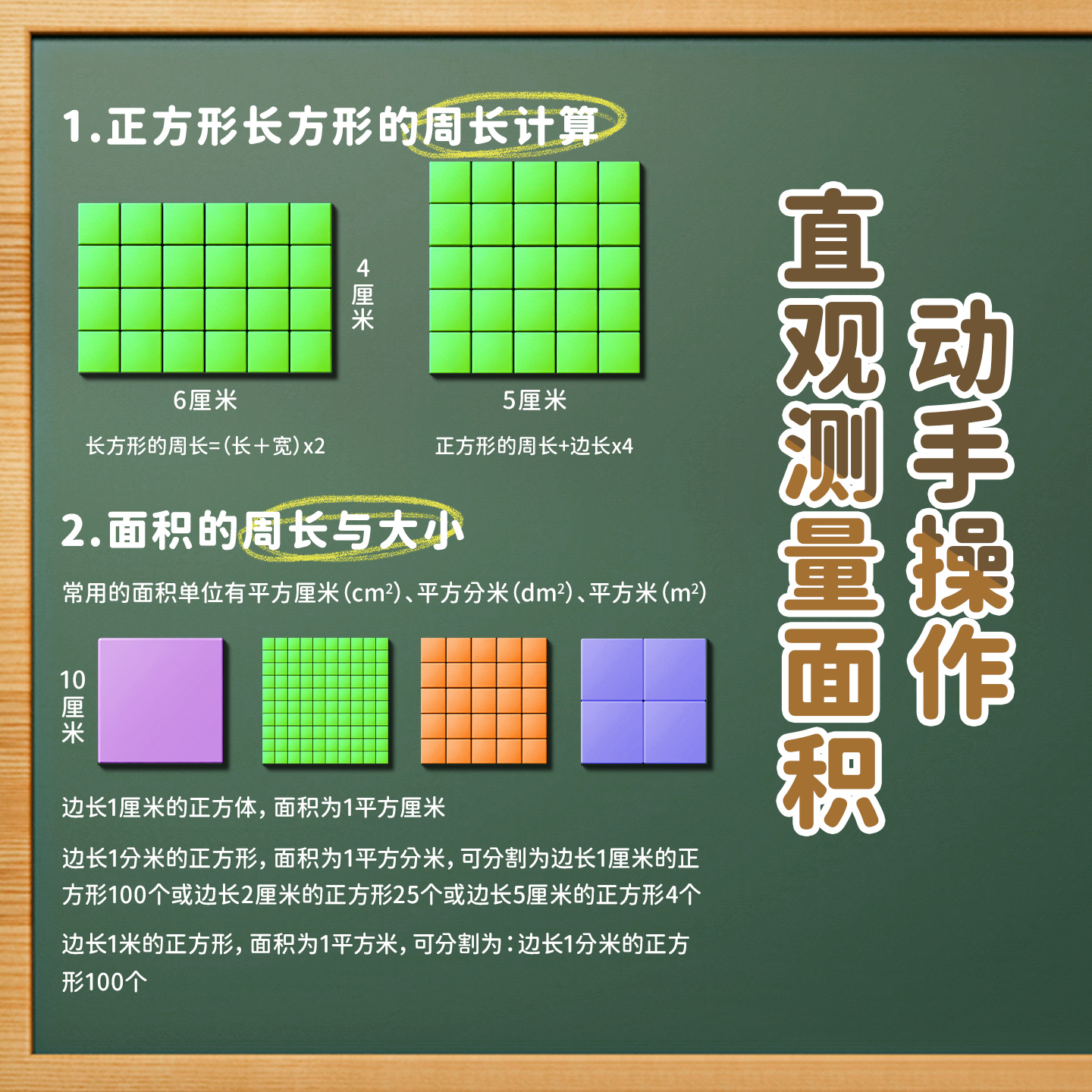 磁性面积与周长套装教具平方厘米的长方正方形分米学习教材同步磁吸学具计算测量器小方块边长1cm小学生数学