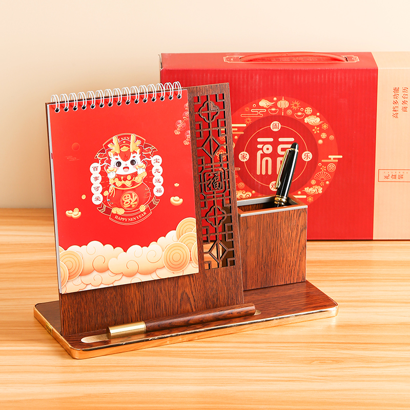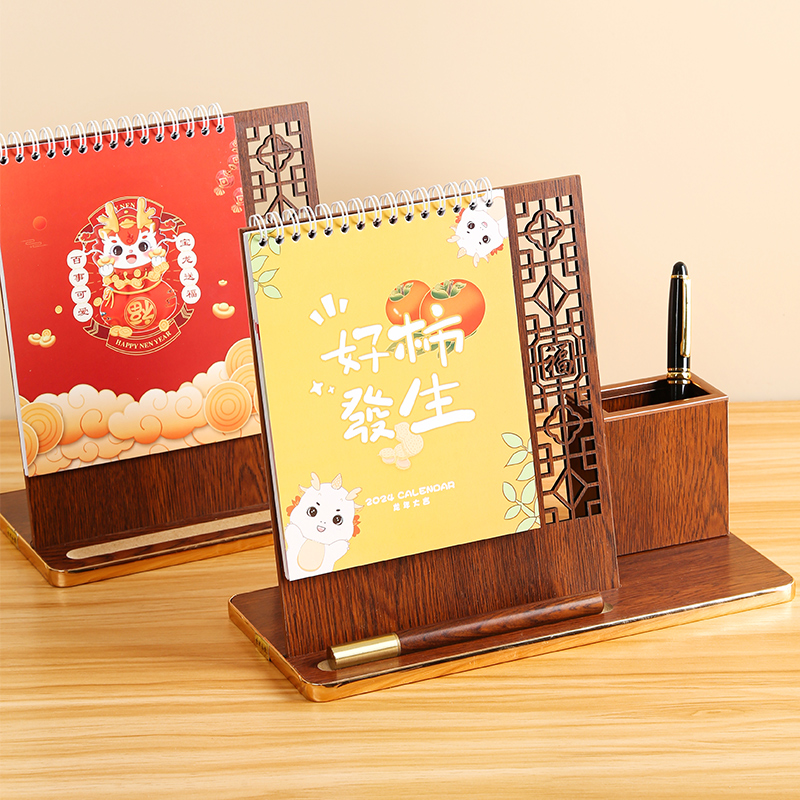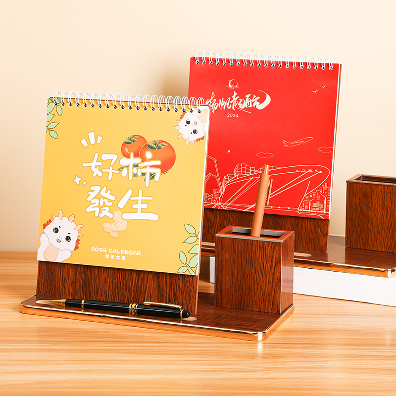 2025台历笔筒收纳木制日历办公桌面创意摆件定做每天一页计划本打卡简约工作记事本图年月历架订制LOGO