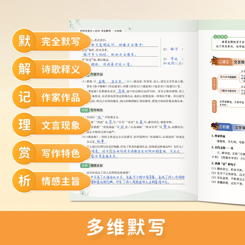 一本初中生必背古诗文初中古诗词文言文完全解读七八九年级语文英语满分作文古诗文全一册古诗词文言文必背789年级教辅工具书