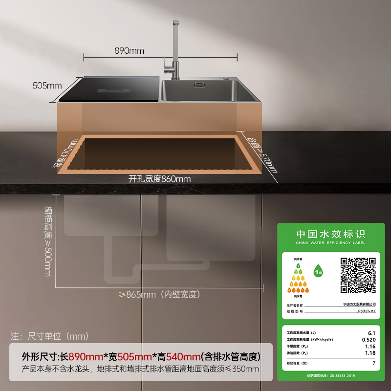 每誉水槽洗碗机J1家用嵌入式台上一级水效洗碗烘干消杀渣水强排