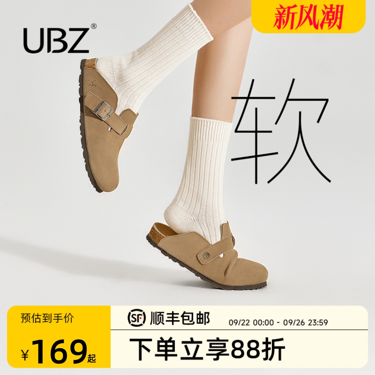 UBZ 防水厚底勃肯鞋女2025新款春秋包头半拖男款博肯增高真皮单鞋