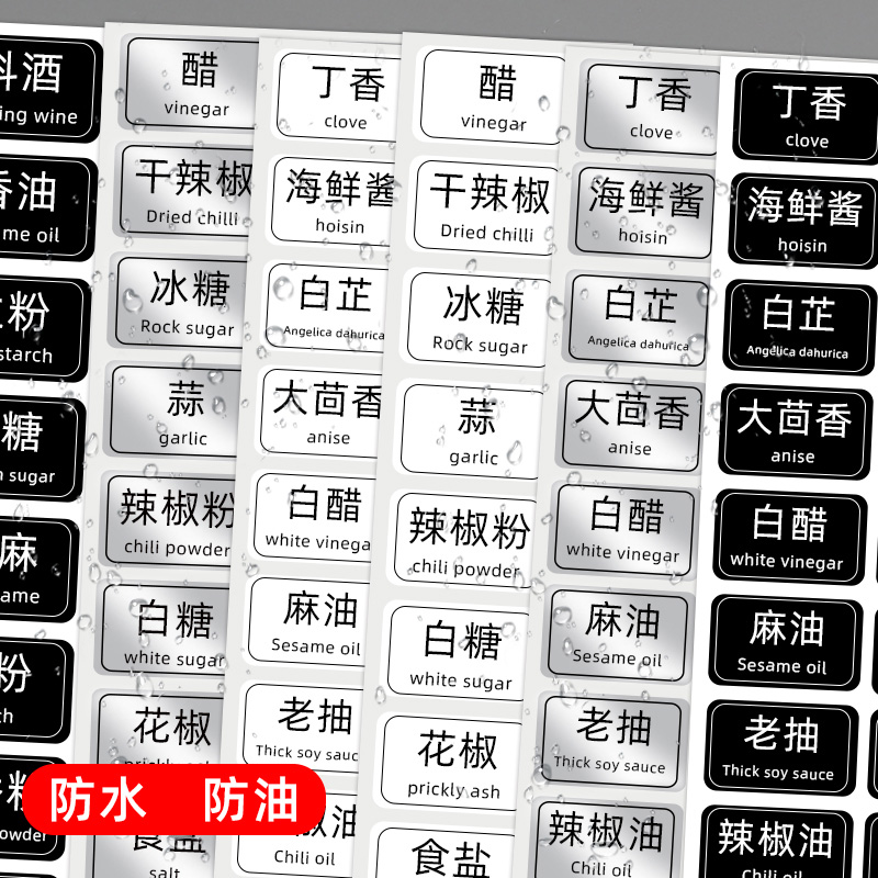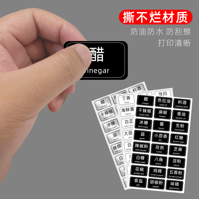 调料瓶贴纸厨房家用调料标签贴纸自粘油瓶罐油盐酱醋味精酱料五谷防水防油