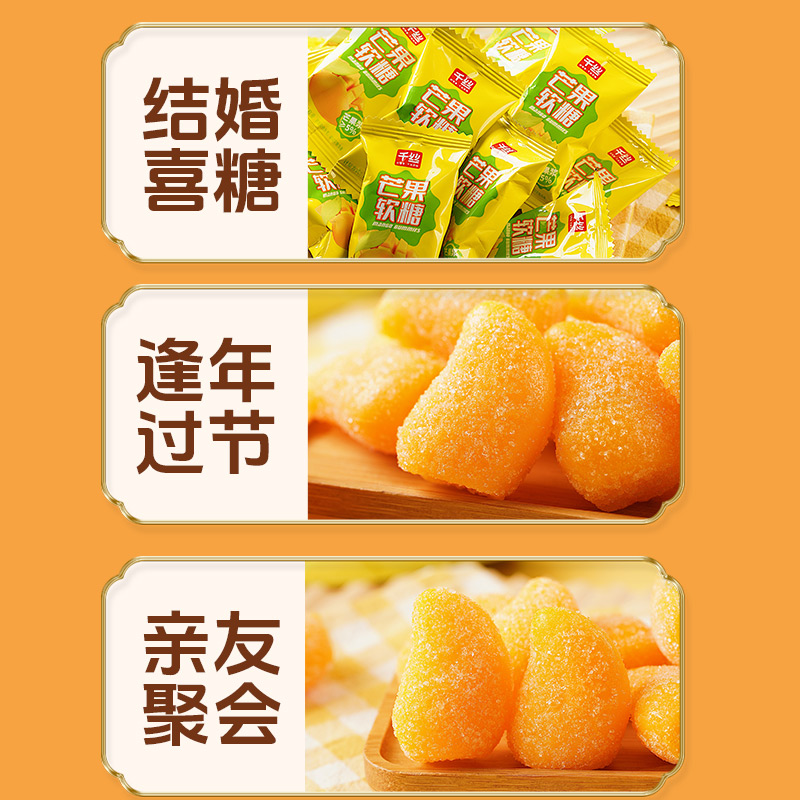 千丝 芒果软糖水果味婚庆喜糖橡皮糖果 年货 圣诞节 小零食散装
