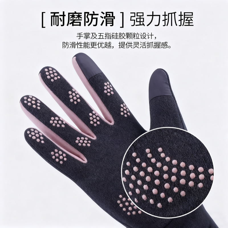 新款冬季保暖手套加绒加厚防寒触屏骑行开车户外运动德绒棉手套