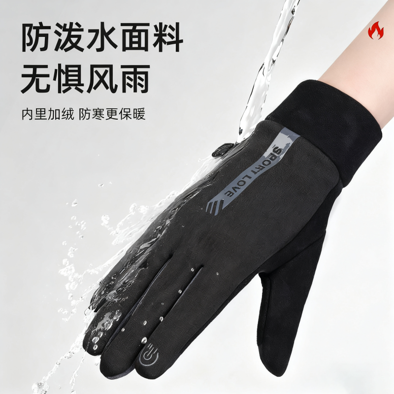 手套女秋冬季2025触屏加绒加厚滑雪电动车保暖冬天骑行男防水骑车