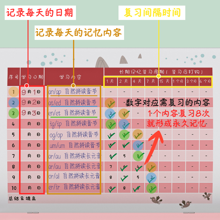 艾宾浩斯遗忘曲线记忆本儿童小学生背诵笔记本学生学习复习计划表