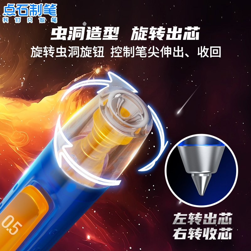 点石制笔DS-0194银河时空舱旋转中性笔炫酷高颜值速干顺滑好写刷题笔0.5旋转黑笔学生考试专用创意双珠签字笔