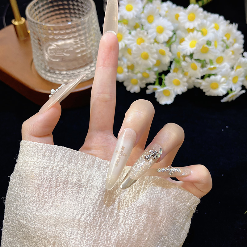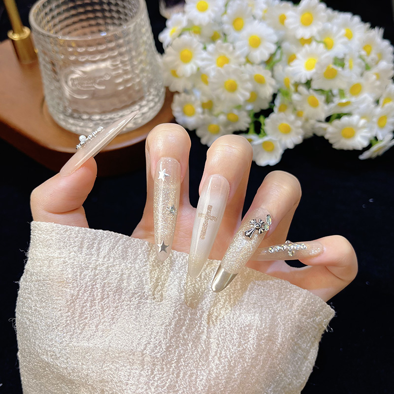 纯手工爆闪辣妹k罗心银色渐变猫眼千金可拆卸反复使用显白高级感