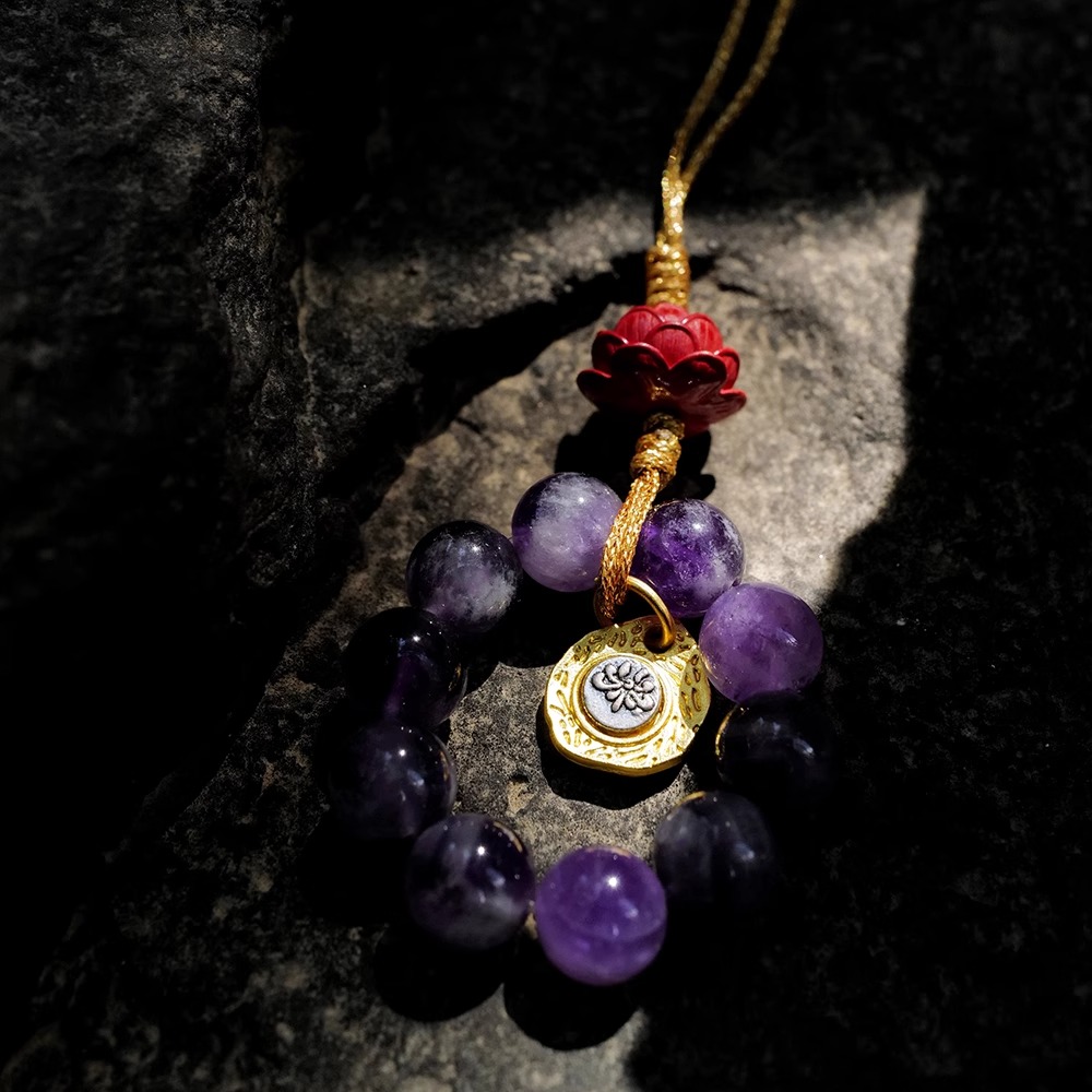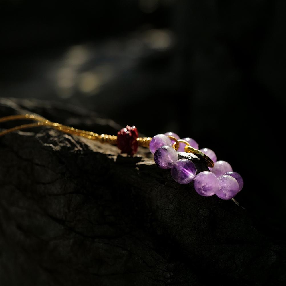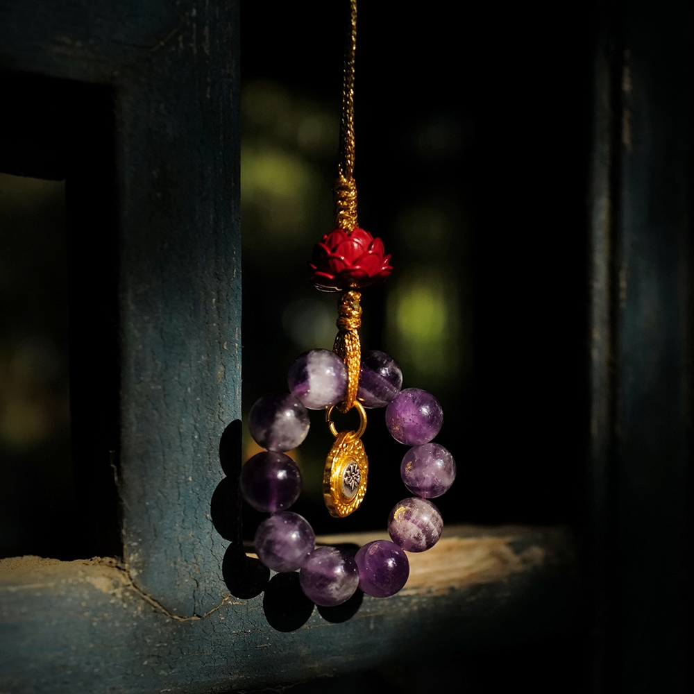 《莲生妙有》天然梦幻紫水晶扎基拉姆手机链钥匙扣原创设计礼物女