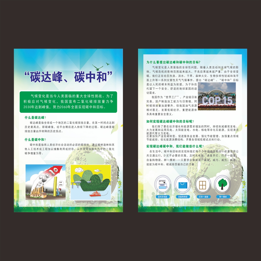 碳中和碳达峰宣传海报双碳行动节能减排宣传展板低碳环保节能先行宣传标语保护环境绿色环保低碳节能墙贴挂图