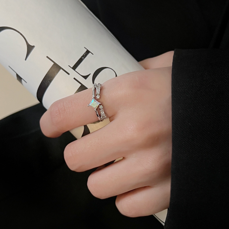 KANSAI锆石闪钻镶嵌方形宝石戒指欧美经典简约个性冷淡风情侣指环