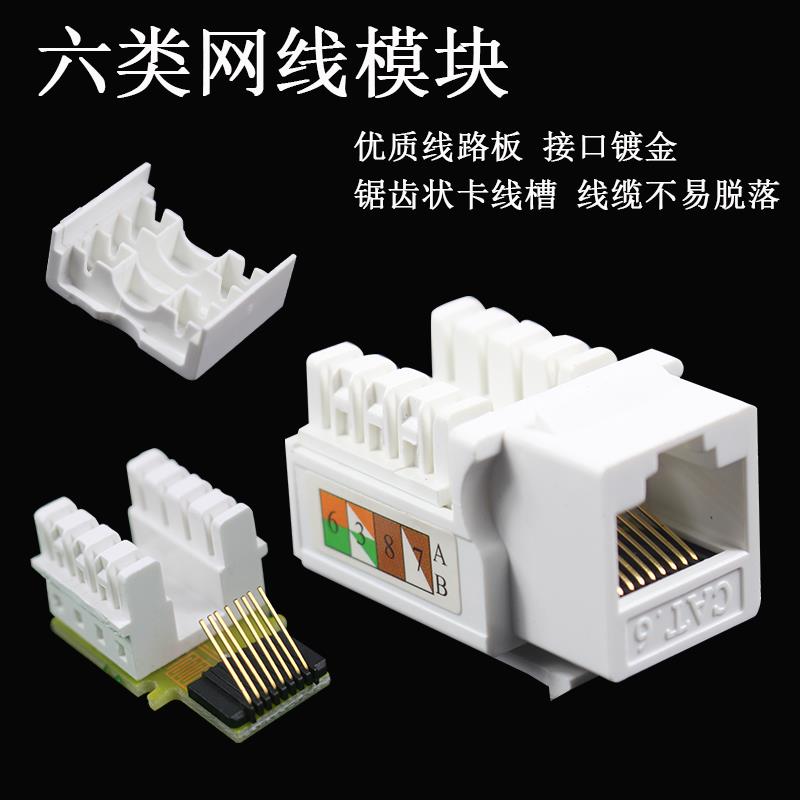 六类网络模块CAT6超五类电话千兆网线RJ45非屏蔽面板模块镀金过测