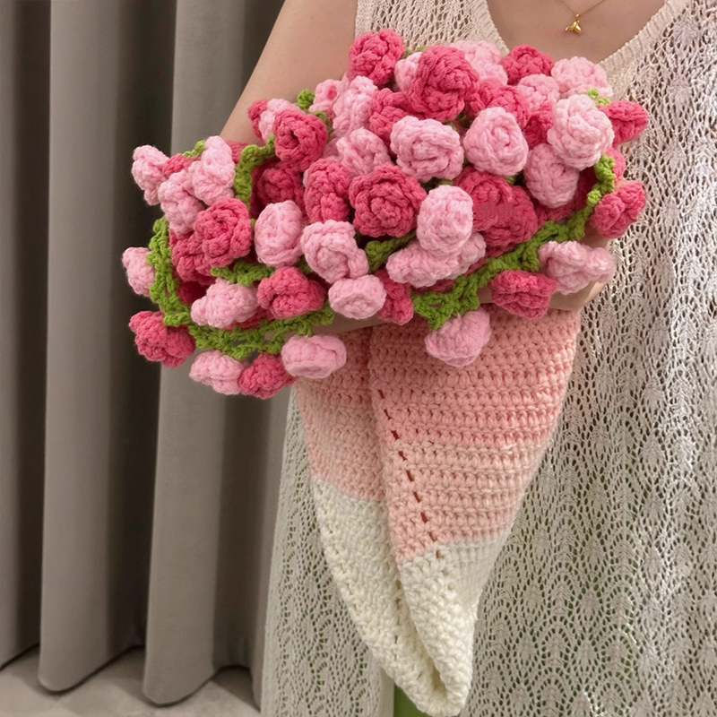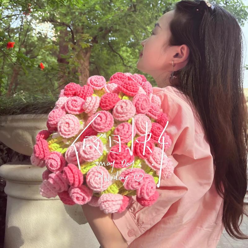 玫瑰花渐变毯花束的毯子钩织手织diy毛线针织手工编织自制材料包