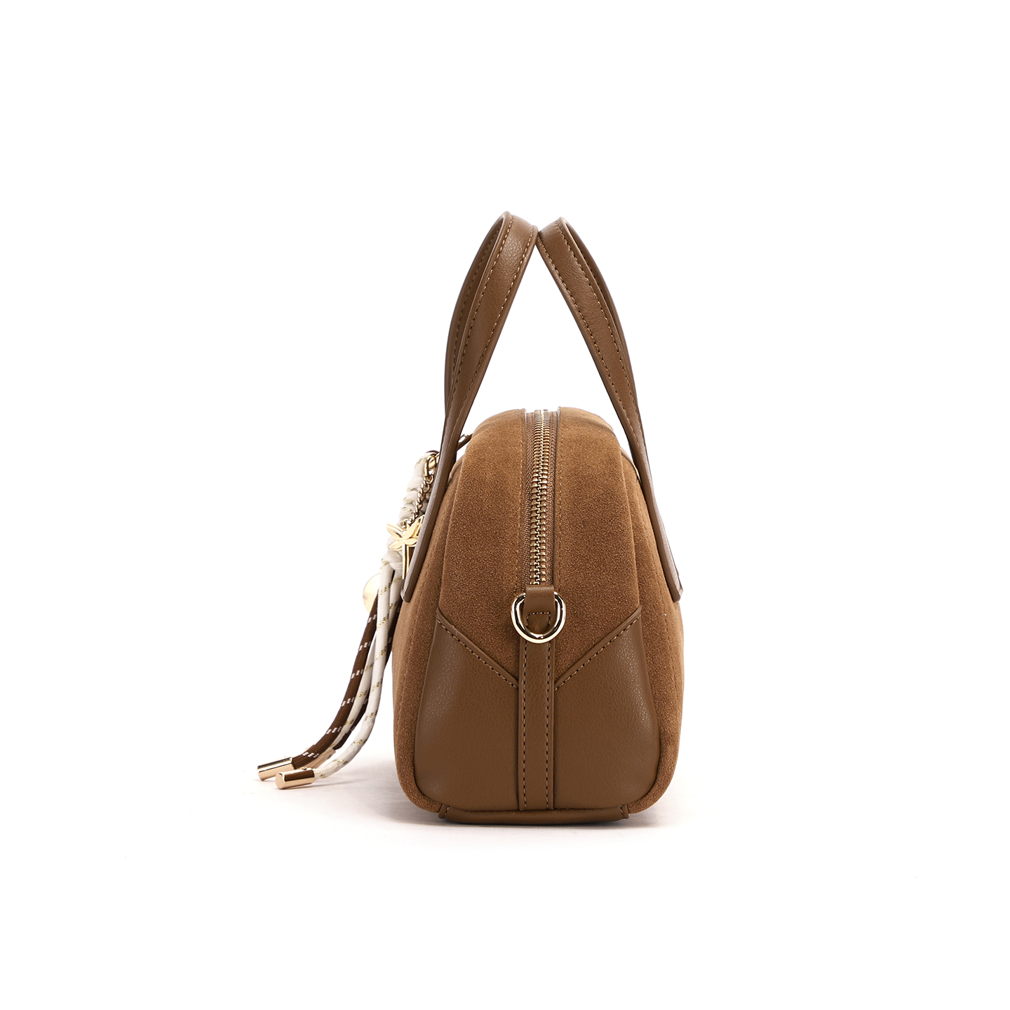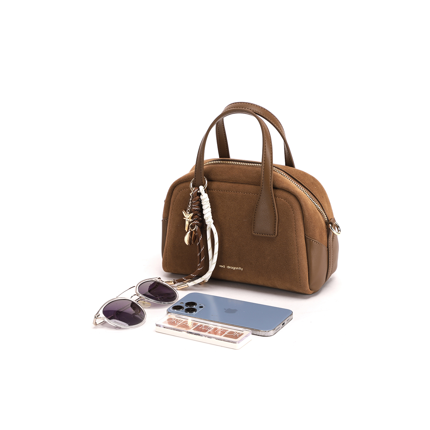 红蜻蜓保龄球包2025新款仿麂皮斜挎包反绒面手提波士顿包通勤女包