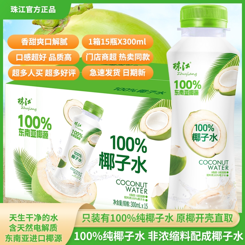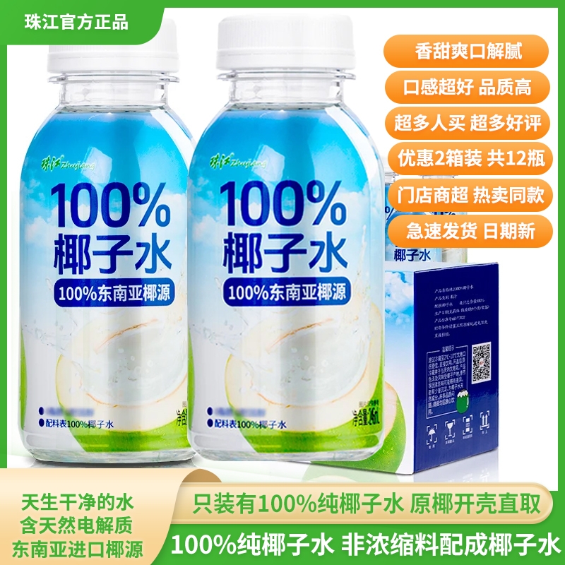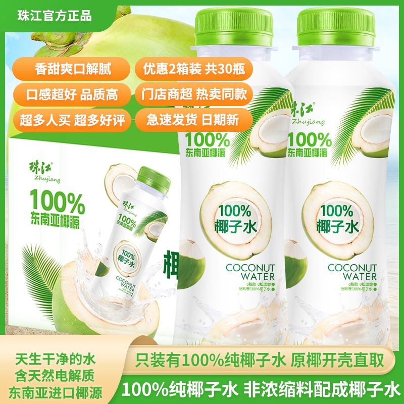 珠江100%纯椰子水百分百正宗整箱含天然电解质东南亚椰源夏日饮料