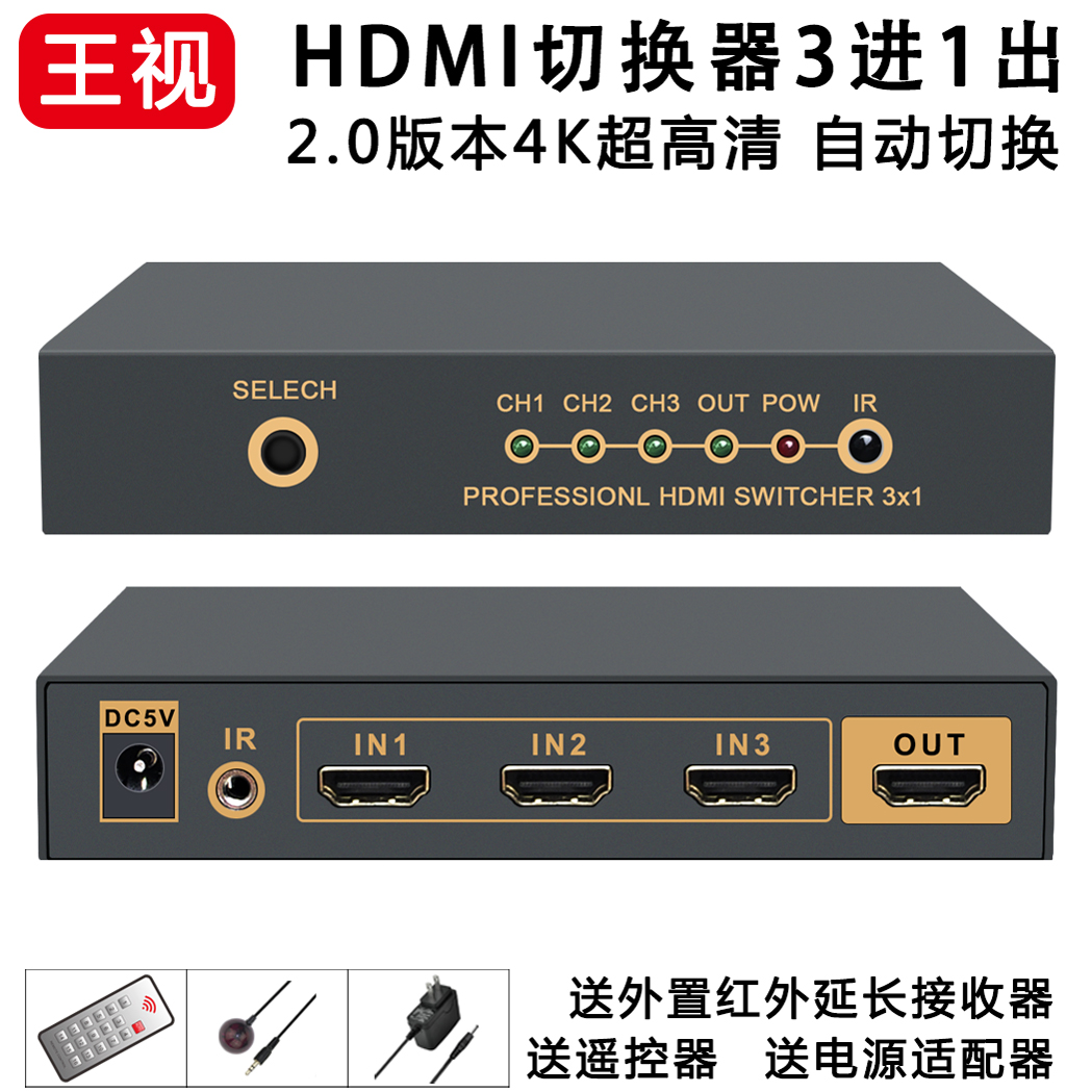 hdmi切换器三四五进一出3/5进1出2.0自动4K高清音视频电脑王视