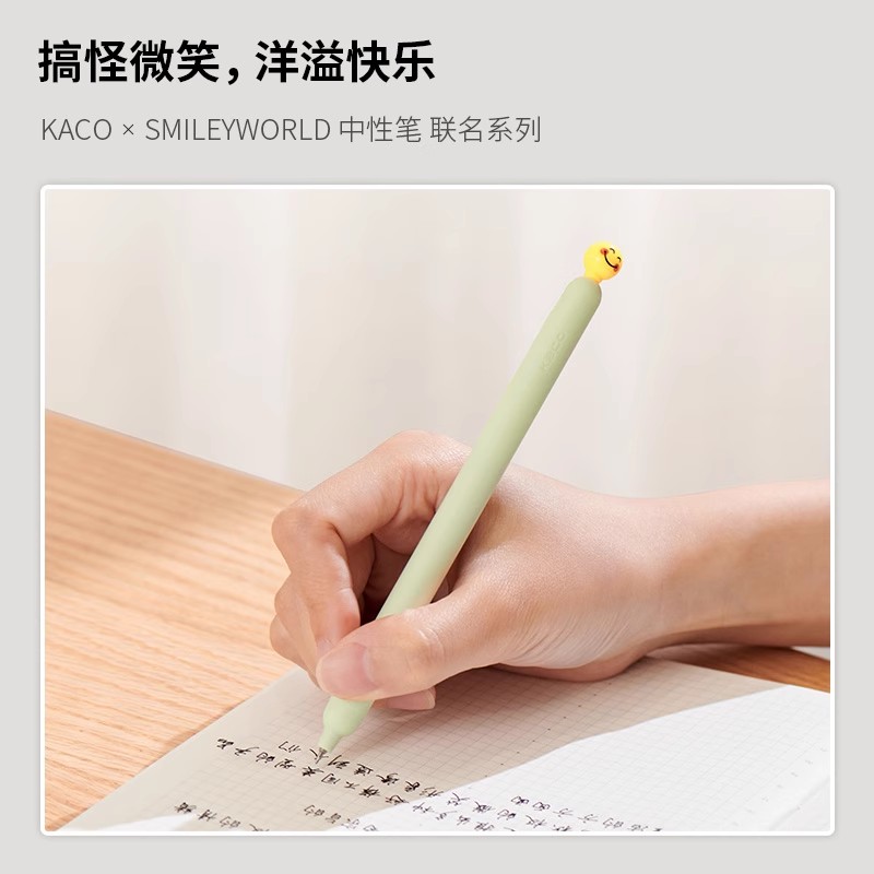 KACO限定灵悦中性笔笑脸款popup侧按式0.5黑笔双珠ST尖创意水笔学生考试刷题速干笔办公签字笔SMILEYWORLD
