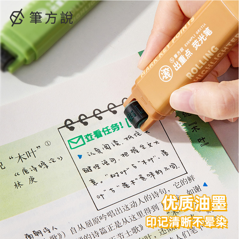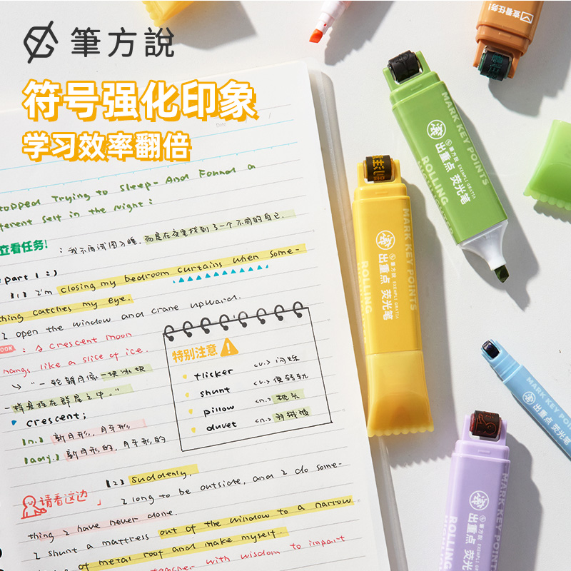 点石三角杆荧光笔12色记号笔简约学生划重点标记笔套装柔色手账笔
