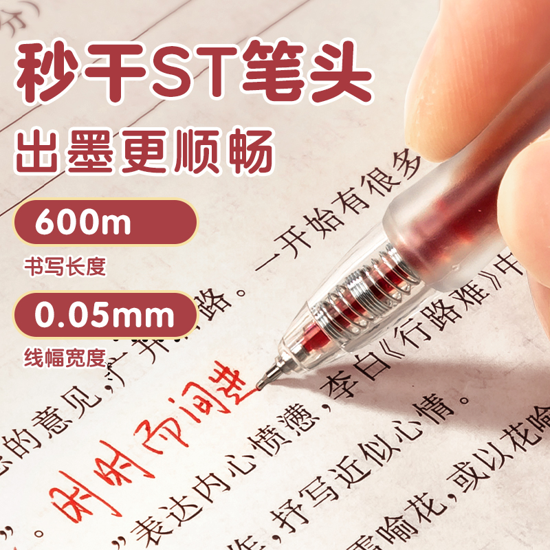 三年二班×点石红笔速干学生用红色中性笔老师专用粗头批改作业高颜值柔绘笔直液式刷题笔圆珠笔勃艮第红水笔