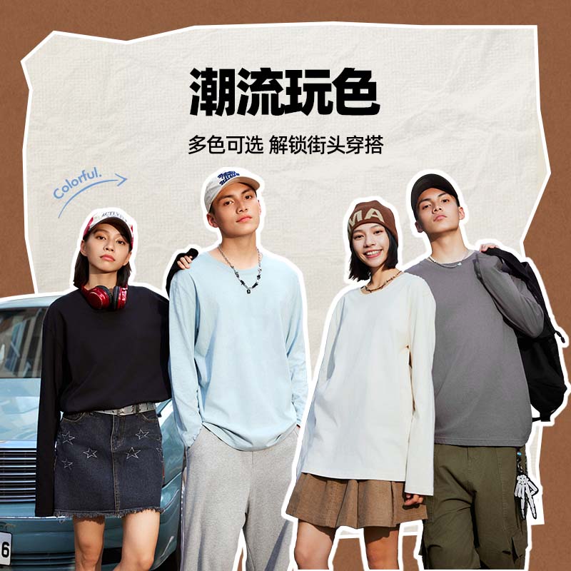 班尼路重磅纯棉长袖t恤男款秋季打底衫半袖青少年大码短袖体恤夏A