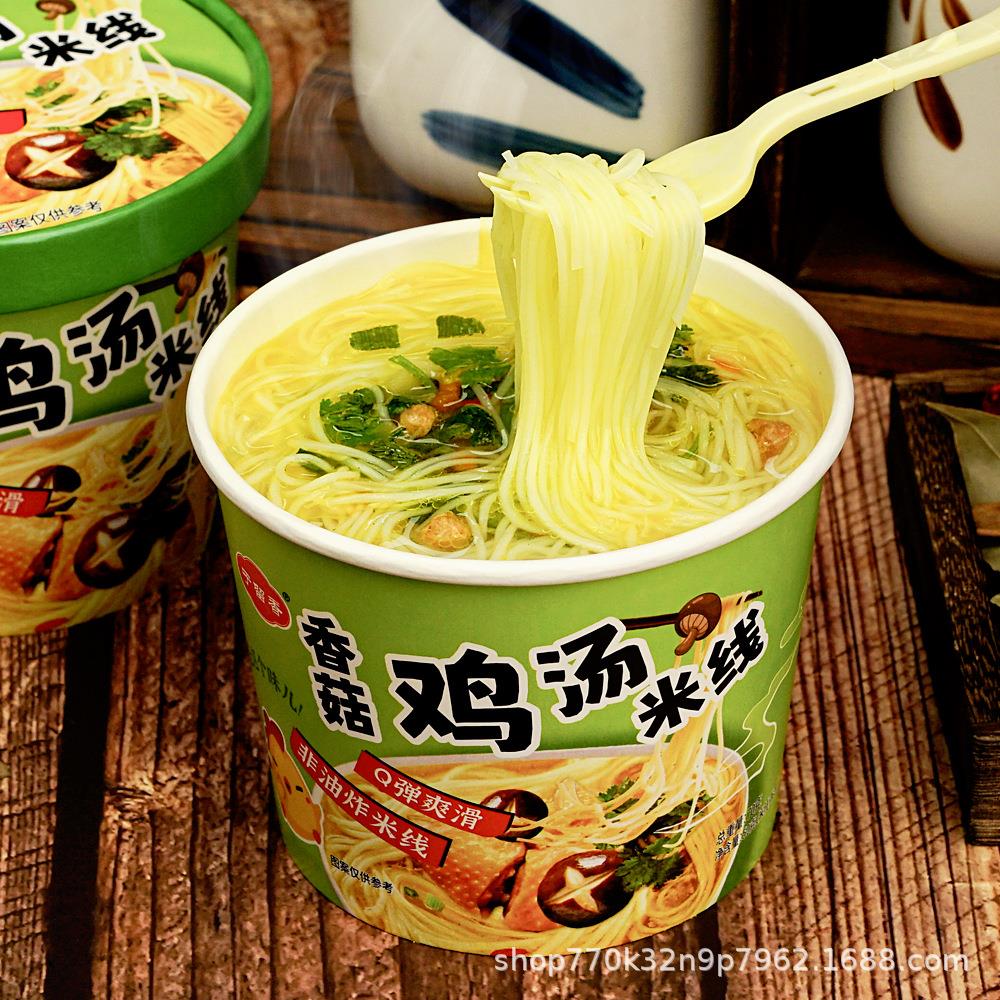 香菇鸡汤米线速食免煮汤好喝冲泡即食桶装方便鸡汤米线