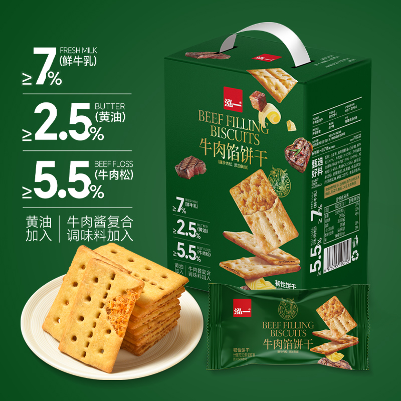 泓一牛肉馅酥脆夹心饼干网红爆款解馋独立包装薄脆零食休闲食品
