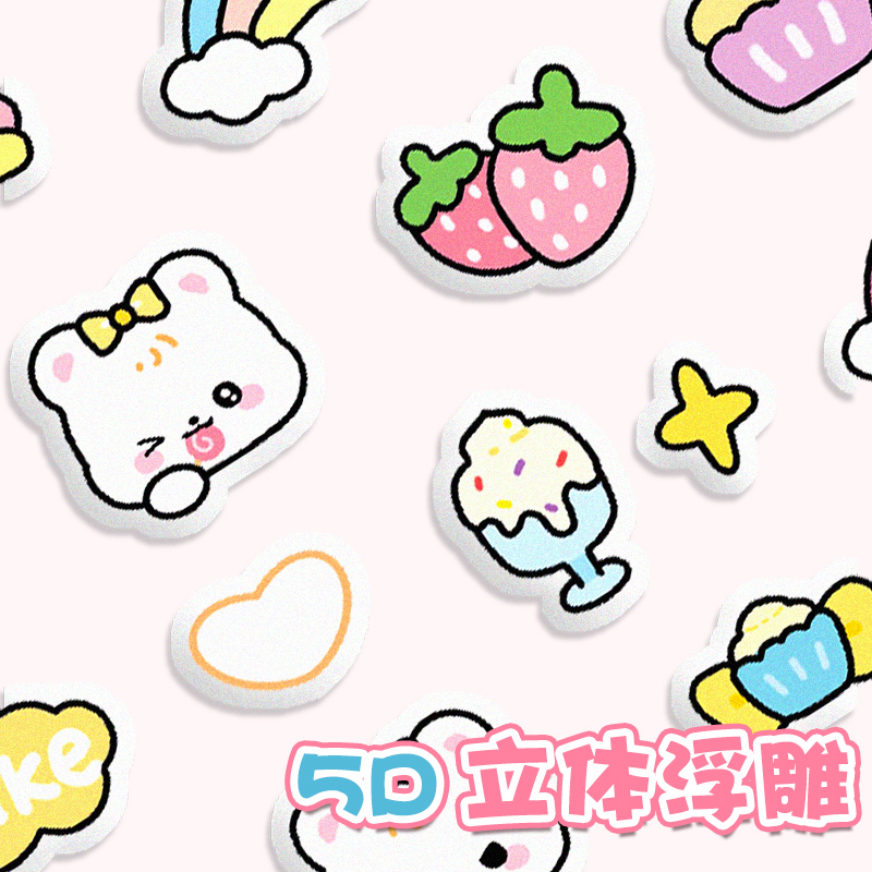 5D浮雕指甲贴纸儿童自粘美甲贴可爱小图案卡通贴美甲贴片女孩脚趾贴装饰贴画素材手机壳夜光手账咕卡贴荧光贴